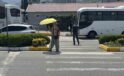 Sıcak havadan şemsiye açarak korundu